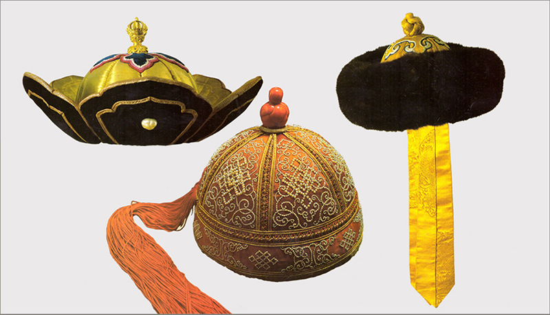 The different Mongolian tribes are distinguished by their dress and decoration. The Mongolian saying *the dress is god, the body is evil* comes from the noble moral admonition that the dress, its decorations should suit the person and chosen according to the taste. There were used many kinds and makes of national dress and there are more than over hundred kinds of just for headgear varies by ladies’, gents, children’s, special rites and ceremonies, everyday use and so on.