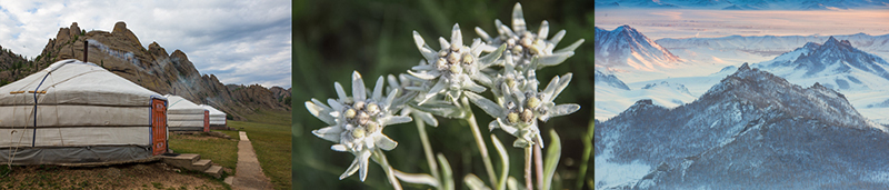 Gorkhi-Terelj national park is the closest national park about 75 km north-east of UB and ideal destinations for those with a short time to travel in Mongolia. The park is a 3rd largest protected area in the country established in 1993 and most spectacular parks with fauna filled forests, wide open valleys covered with wildflowers, dramatic rock formation and with 2 waterways of Terelj and Tuul rivers along the park. The park’s most picturesque feature is its rock formations at top of the forest-covered mountains shapes like castles on the mountain. You can go hiking and climbing in these stunning mountains while luckily spotting wild animals such as elk, moose, bear and more. If interested in flowers, you will be captivated by sights of yellow, white, pink, and blue flowers in the wind bow you to like saying welcome. With more, you can horse and camel riding in wide valleys, driving around the park, camping in and visiting local families and rafting on Tuul River. Most popular attractions are giant Turtle Rock and Ariyabal Meditation Temple.