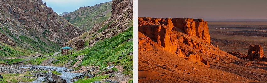 Least thing to do in Mongolia for travelers is to visit two major important highlights of the country: South Gobi and Kharkhorin! Indeed, this itinerary could be classified as a CLASSIC by presenting true essence of Mongolian nature and culture with visits to hospitable nomad settlement, active Buddhist monastery, historical sites and natural parks. Nature along this tour will be changing dramatically: from the golden dunes of Gobi to the open green valleys dotted with wild flowers, through vast steppes, a great waterfall and charming Lake Orog! Additionally, the highlight of the tour is exploring mystical Khermen Tsav- a famous place for paleontologists, locating to the west from scenic Khongor Sand Dunes. Here you will feel like living in a middle of nowhere and end of the world.